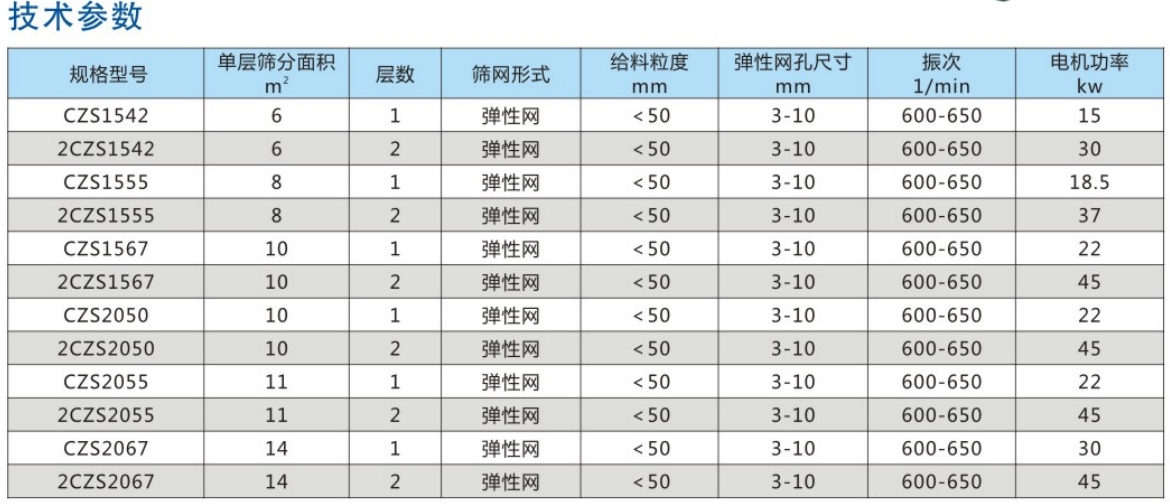 我公司研制開發(fā)的CZS系列馳張篩是專門分選中、細粒度粘散難篩物料,分離范圍1-30mm的篩分機械。產(chǎn)品配備承接物料、密封接口等工藝結(jié)構(gòu),可廣泛適用于礦山、冶金、煤碳、建材、水電、火力發(fā)電、城市煤氣、城市垃圾、污水凈化等行業(yè)工藝流程中的物料分級。